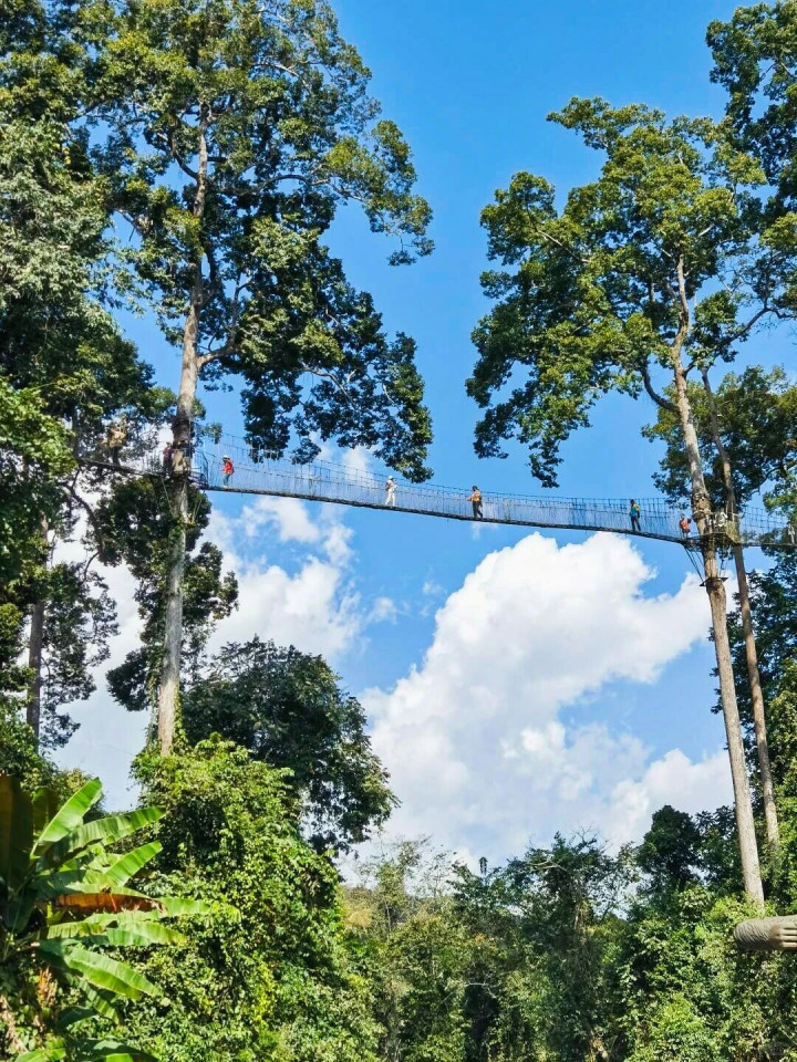 眼下的土壤湿润,每一步都像在触碰地面的脉搏。小兽在枝端擢升,鸟鸣在耳畔低唱,仿佛整座丛林都在轻声诉说。 登上云霄栈说念,行于树冠之巅,鸟瞰中国最高的望天树,它径直向天,似要点破云层。风拂过叶尖,阳光散落,整片雨林如被镀上金边,好意思得令东说念主失语。溪水潺潺,鸟声清越,总共的烦忧,都在这片绿光中悄然融解。