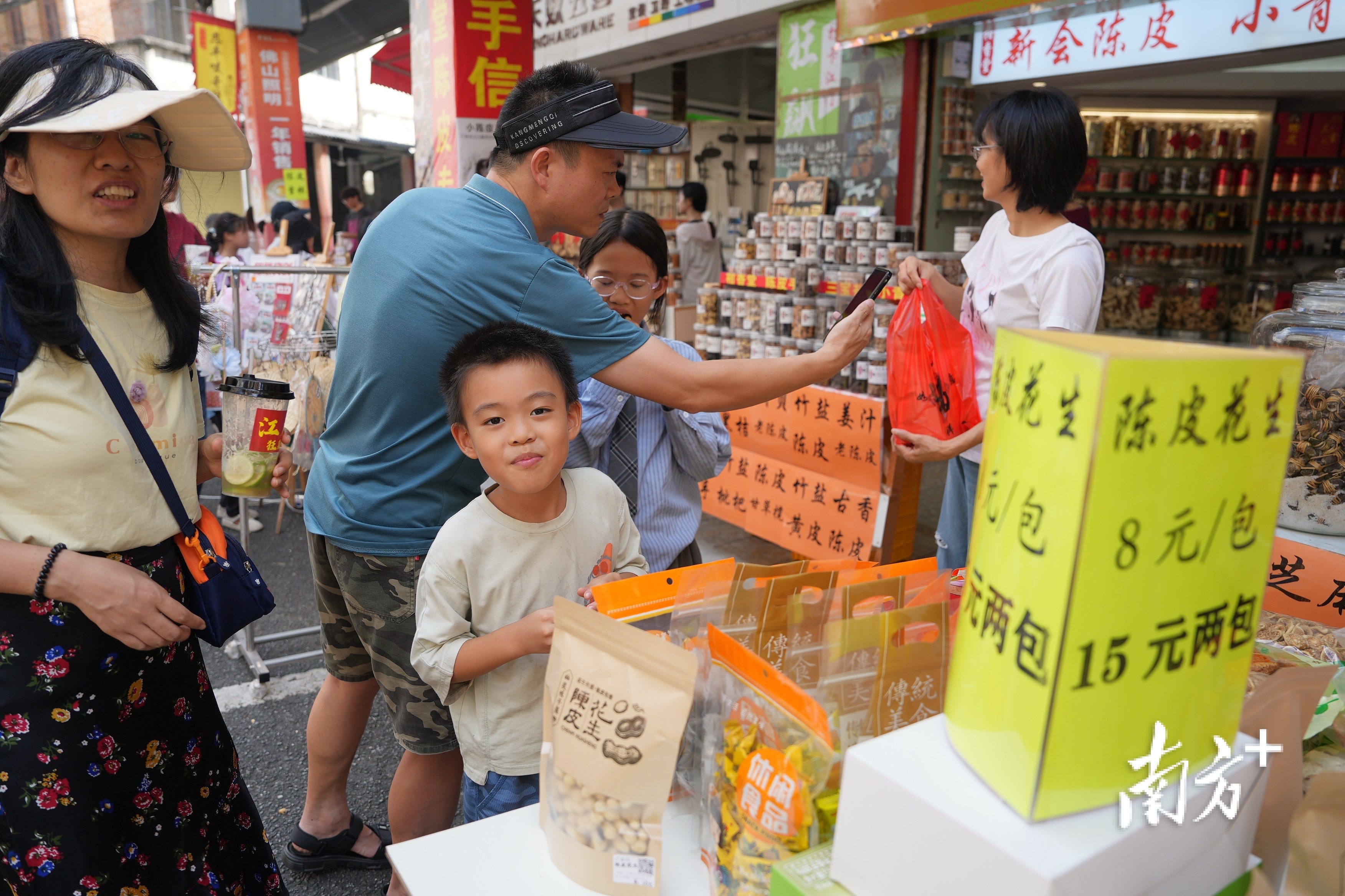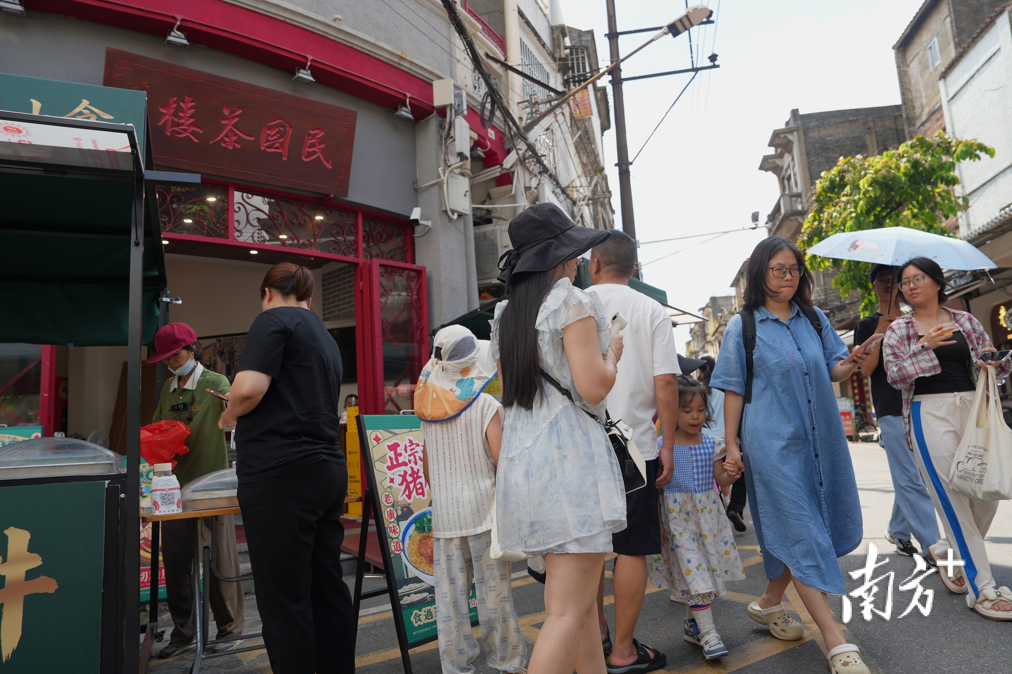 国庆来江门游玩,长堤历史文化街区是好多旅客的首选打卡地。10月3日,南边+记者来到这里,发现启明里泊车场里,停满摆布城市的车辆,旅客们徘徊在旧街区的八街九陌,玩赏江门的芭蕉扇、宫灯等非遗阵势,品味江门特点好意思食。民国茶室有现作念的江门各地特点小吃现金九游体育app平台,街边的外海面烟气缭绕,多样特点茶饮目不暇接,陈皮花生等零食尤其受小一又友的爱好,马拉糕等克己糕点眩惑旅客询价品味。