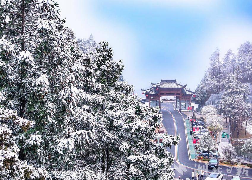 坐落于群山之间的屏风寨景区,在清白白雪的烘托下,摇身化作如梦似幻的童话宇宙,尽显冬日特有的诗意与放纵。雪花簌簌飘落,似柳絮纷飞,如玉蝶蹁跹,将屏风寨的山峦、林木、石阶王人尽心砥砺了一番。蓝本强盛的青松,此刻挂满了蓬松的雪绒;衰退的亭台楼阁,被白雪隐私了飞檐翘角。