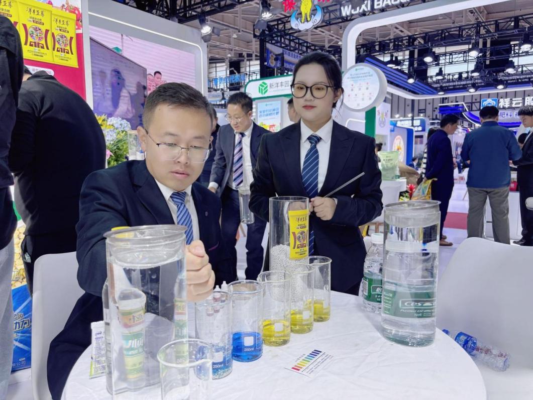 现场成就的家具互动熟习区更是成为全场焦点。在融解实验中,生物有机肥“洋丰豆”全水溶精华版遇水即溶、速即崩解,展现出了优异的滴灌、喷灌适用性;而在酸碱中庸熟习中,升级硫基复合肥“洋丰至尊”通过清楚的神色变化,直不雅展现了其调度泥土酸碱度的特有功效。