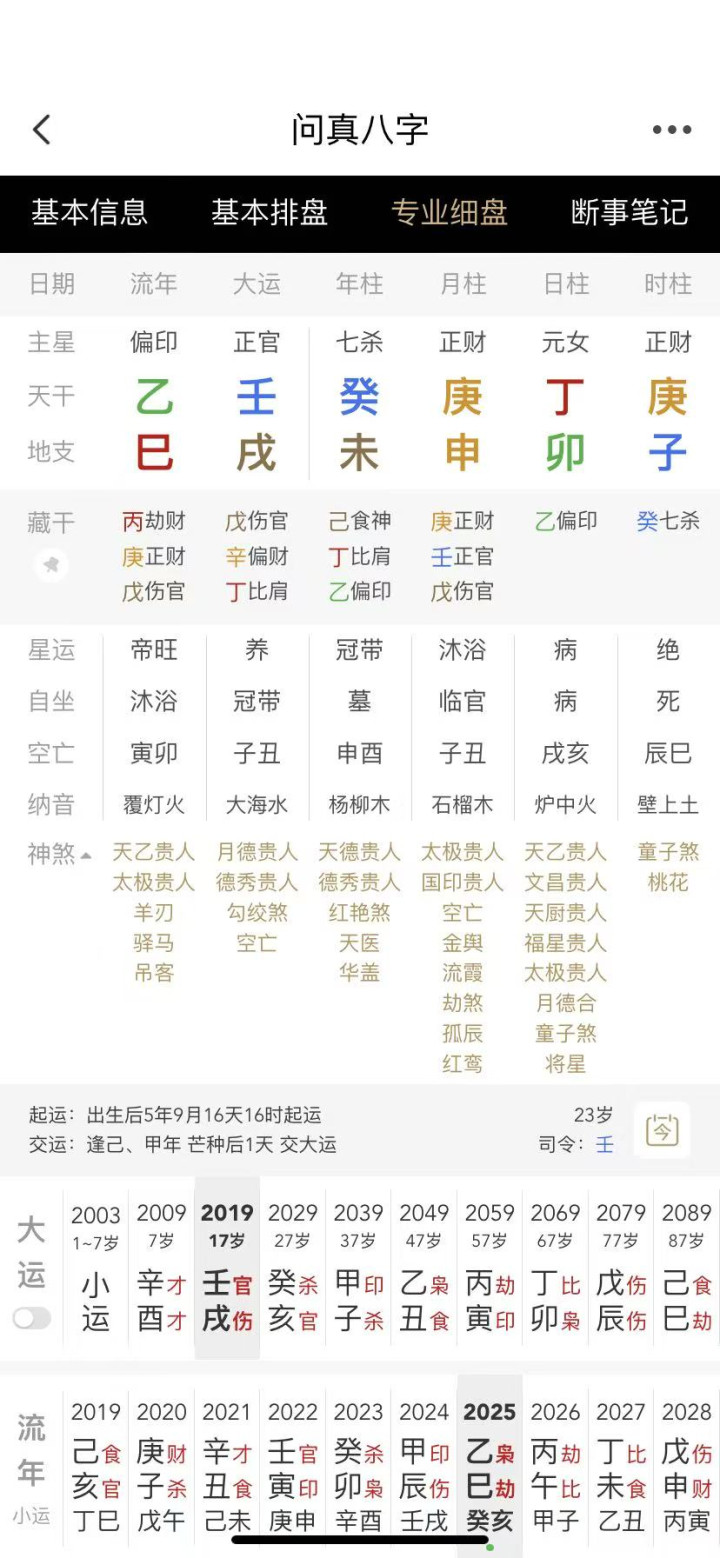 大运:丁酉,戊戌,己亥,庚子,辛丑,壬寅,癸卯,甲辰,乙巳,6岁运。