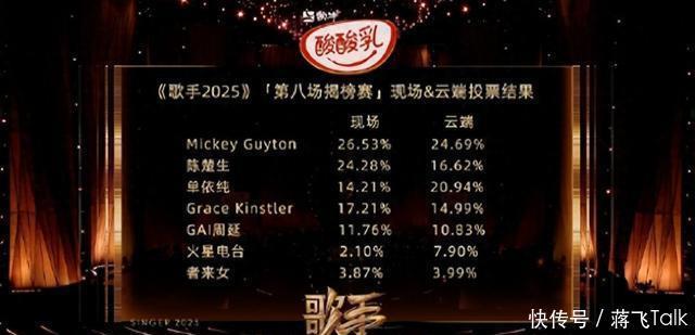 《歌手2025》第八期海外揭榜赛以米奇·盖顿第一,陈楚生第二,双揭榜歌手李佳薇与艾莉西亚·伊芙琳的逆袭则成为本期最大看点,排行如下: