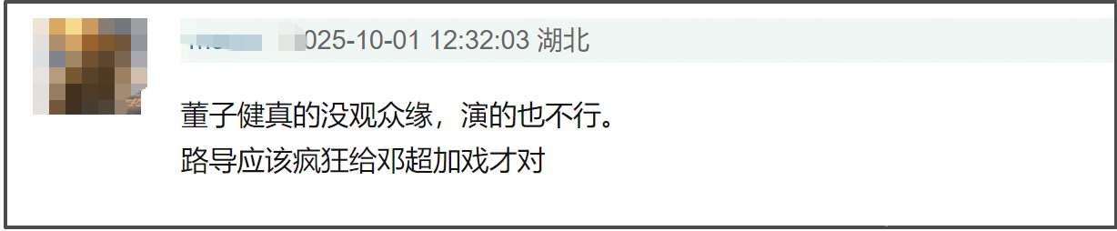 值得一提的是,除了剧情,主演董子健的评价也备受质疑。有不雅众暗示,他的进展和雷喜讯对比差距很大,都备撑不起时局,气势不及。邓超出演的“赤发鬼”天然有回想点,但戏份太少了,网友直言,片方都备即是拿邓超作念噱头,把东谈主“骗”进电影院。