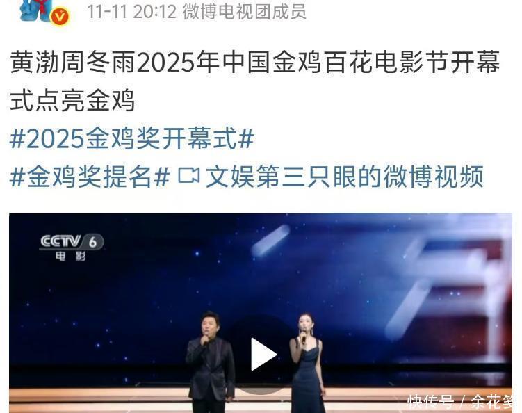 在金鸡奖的开幕式上,最大的咖竟是谋女郎周冬雨,她和黄渤一谈点亮金鸡。