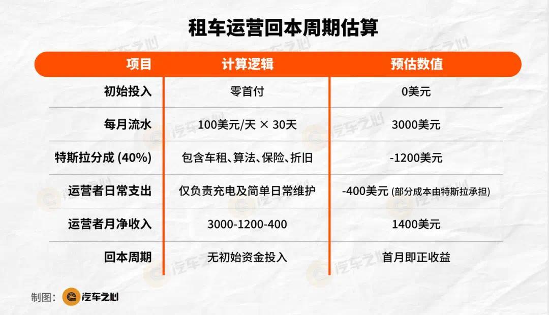 这是一种典型的现款流套利模式,运营者赚取差价,而车辆折旧、电板衰减、残值风险,都备由特斯拉承担。