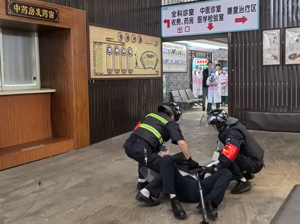 随后,演练负责初始。第一场景模拟别称精神梗阻患者因诉求未取得圆润,捏刀禁绝医师。医师赶紧后退,提起身旁小桌当作驻扎,同期按下一键报警器。中心救急小组闻讯立即反应,组织住户和职工快速疏散至安全区域。在恭候救助时代,医师与“暴徒”难懂周旋。安保东说念主员赶紧衣服装备赶到现场,专揽专科器械顺利将其制服。