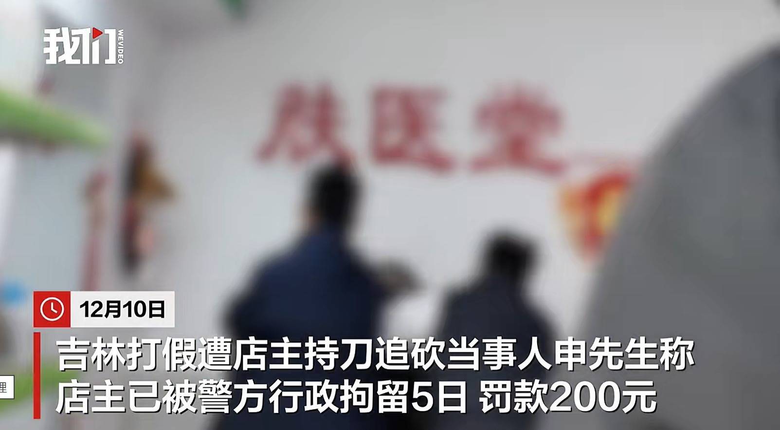 据新京报,12月10日,吉林打假遭店主抓刀追砍当事东说念主申先生称,涉事店主已被警方行政拘留5日,罚金200元。